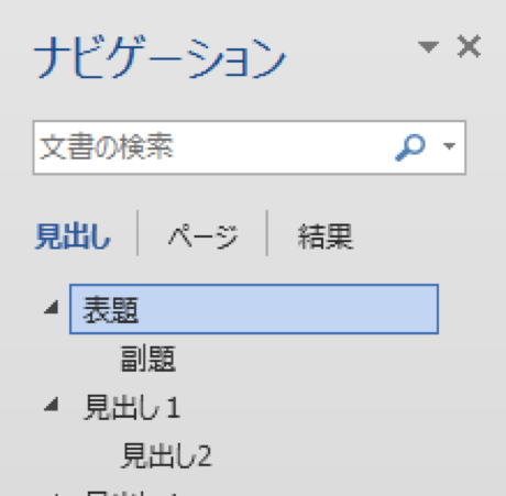 Microsoft Word では、既定では表題や副題のスタイルを設定したテキストは、目次やナビゲーションの見出しに表示されるようになっています。