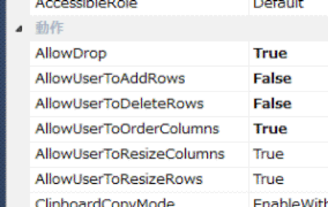 "ReadOnly" を True にしただけだと行の削除ができてしまうので、削除を禁止するために "AllowUserToDeleteRows" を False に設定します。