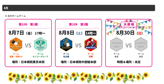 これから 8 月までに渡って続く Li リーグ、その日程は 日本女子囲碁リーグ Li LEAGUE の公式ページ に掲載されています。 けれどもこれだけだと確認を忘れてうっかり見逃しそうなので、私的に自分の Google カレンダーにも登録をしておきました。