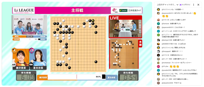 そして Li リーグも本戦が始まって、その配信がすごく楽しい! 開幕式で見たのと同じわちゃわちゃ感が 日本棋院囲碁チャンネル で放送される対局内でも健在で、この微笑ましさが楽しい気持ちにさせてくれます。